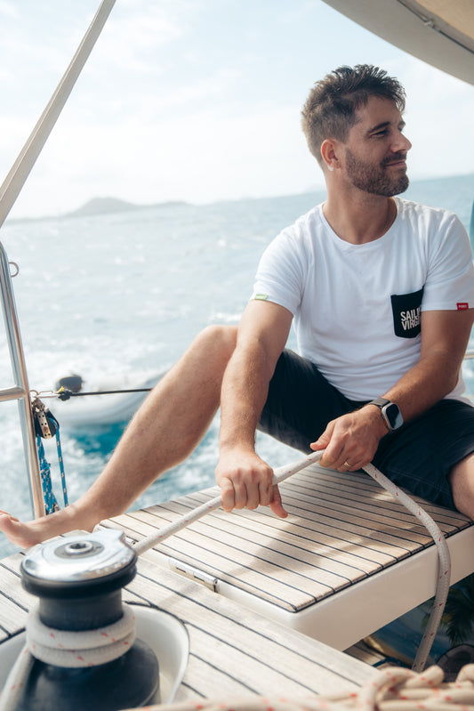SV White T-Shirt - Black Pocket - Sailing Is Wet